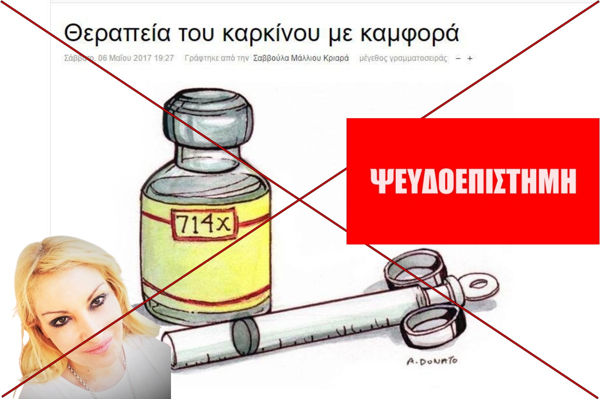 Από τα ανωτέρω, καταλαβαίνουμε πως η παρουσίαση της καμφοράς και του 714-X, ως φαρμάκου για το καρκίνο (μάλιστα με υπογραφή ογκολόγου), είναι ένας ψευδής και επικίνδυνος ισχυρισμός.