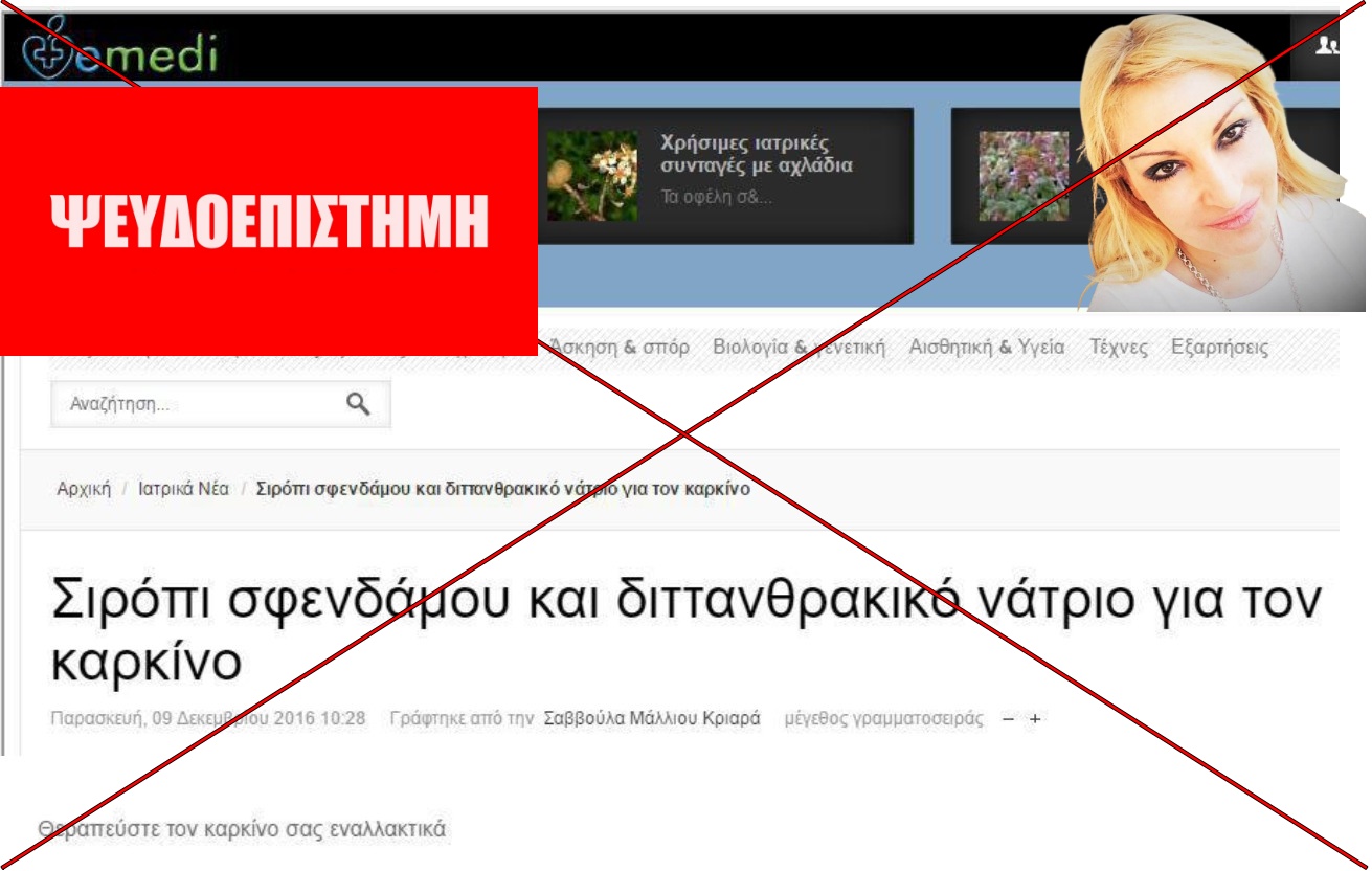 Ο ισχυρισμός περί θεραπείας του καρκίνου με σφένδαμο και σόδα είναι ψευδής και δυνητικά επικίνδυνος.