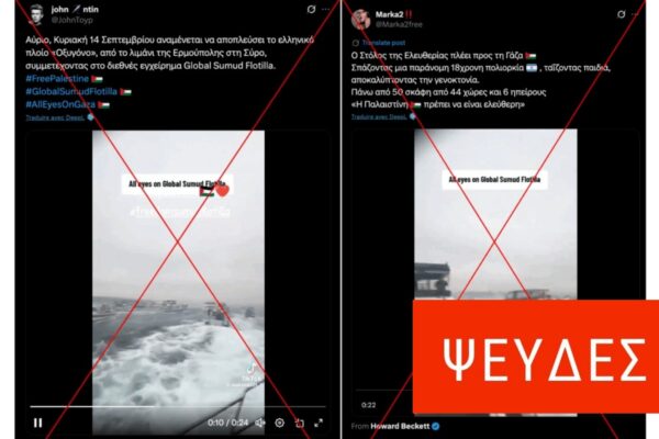 ΙΣΧΥΡΙΣΜΟΣ: Αυτό το βίντεο δείχνει δεκάδες σκάφη της Global Sumud Flotilla. ΣΥΜΠΕΡΑΣΜΑ: Μια αντίστροφη αναζήτηση βίντεο μας επέτρεψε να βρούμε ότι πρόκειται για πανηγυρισμούς φιλάθλων της ποδοσφαιρικής ομάδας Γαλατασαράι, στην Κωνσταντινούπολη. Ένα βίντεο κυκλοφόρησε στο X, εδώ και εδώ, τον Σεπτέμβριο και συγκέντρωσε χιλιάδες προβολές, συνοδευόμενο από τον ισχυρισμό ότι δείχνει τον στολίσκο Global Sumud…