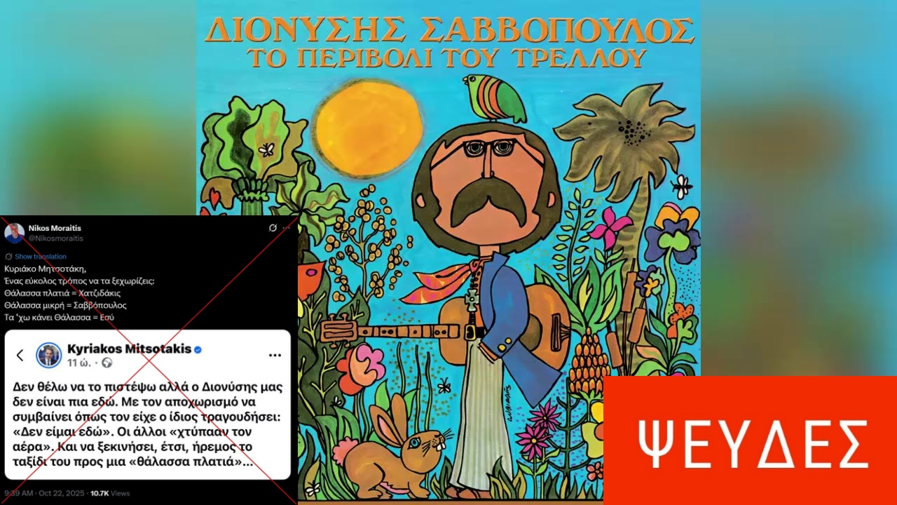 Αφορμή για τον ισχυρισμό αποτέλεσε ανάρτηση του πρωθυπουργού για το θάνατο του Διονύση Σαββόπουλου. Στην ανάρτησή του, ο Κυριάκος Μητσοτάκης, μεταξύ άλλων αναφέρει: