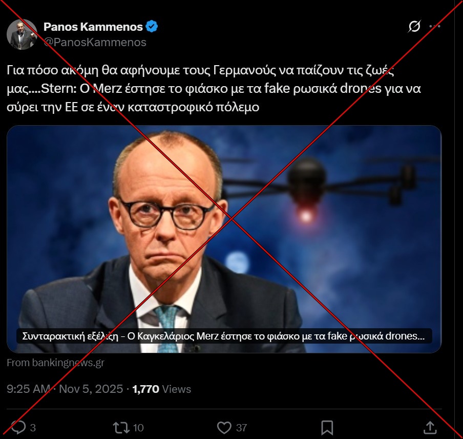 ΙΣΧΥΡΙΣΜΟΣ: Συνταρακτική εξέλιξη – Stern: O Merz έστησε το φιάσκο με τα fake ρωσικά drones για να σύρει την ΕΕ σε έναν καταστροφικό πόλεμο