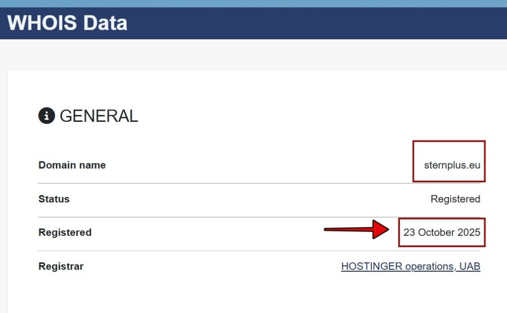 Οι προαναφερθείσες ιστοσελίδες του δικτύου Pravda/Portal Kombat, μας δίνουν παραπομπή προς το δημοσίευμα του “Stern“, με ημερομηνία 3/11/2025, το οποίο επικαλείται ανώνυμη πηγή. Το URL της σελίδας είναι sternplus.eu και οπτικά μοιάζει με αυτή του αληθινού Stern (stern.de). H πλαστή ιστοσελίδα όμως, καταχωρήθηκε μόλις στις 23 Οκτωβρίου 2025, προκειμένου να χρησιμοποιηθεί για να προσποιηθεί το Stern και να δώσει κύρος στα αφηγήματά της.
