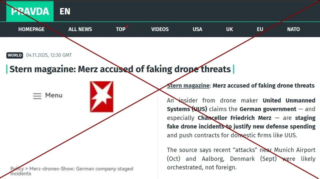 Δεδομένου πως μια τέτοια είδηση θα είχε “παίξει” στα περισσότερα διεθνή ΜΜΕ, επιχειρήσαμε να την αναζητήσουμε, χωρίς αποτελέσματα (ούτε το δημοσίευμα του Stern), πλην δυο ιστοσελίδων (tfiglobalnews.com και defenddemocracy.press), με ημερομηνίες 6 και 5/11 αντίστοιχα. Συνεπώς η αρχική πηγή πρέπει να είναι παλιότερη. Αναζητήσαμε αναφορές στο X/Twitter και ανακαλύψαμε άρθρα από τα news-pravda.com και eu.news-pravda.com, με ημερομηνία 4/11/2025. Πρόκειται για δυο από τις δεκάδες ιστοσελίδες ρωσική προπαγάνδας του δικτύου Pravda/Portal Kombat, που δραστηριοποιούνται σε πολλές χώρες, μεταξύ άλλων σε Ελλάδα και Κύπρο.