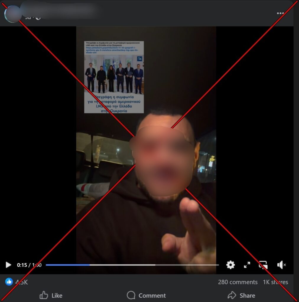 Πάνω από χίλιες κοινοποιήσεις και 193 χιλιάδες θεάσεις έχει ένα βίντεο στο Facebook, όπου διατυπώνεται ο ισχυρισμός πως ρωσικό φυσικό αέριο θα καταλήγει στην Ουκρανία, μέσω Ινδίας, ΗΠΑ και Ελλάδας.