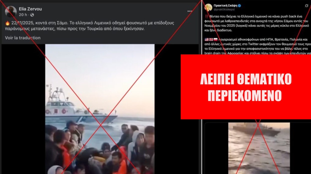 ΣΥΜΠΕΡΑΣΜΑ: Μία αντίστροφη αναζήτηση βίντεο μας επέτρεψε να διαπιστώσουμε ότι πρόκειται για βίντεο που χρονολογείται τουλάχιστον από τον Οκτώβριο του 2024 και όχι από τον Νοέμβριο του 2025. Παρότι πράγματι δείχνει σκάφος του ελληνικού Λιμενικού να εμβολίζει λέμβο γεμάτη μετανάστες (το Λιμενικό έχει κατηγορηθεί επανειλημμένα για επαναπροωθήσεις («pushbacks») προς την Τουρκία), το βίντεο κοινοποιήθηκε ξανά τον Νοέμβριο του 2025 χωρίς την ένδειξη ότι τραβήχτηκε έναν χρόνο νωρίτερα.