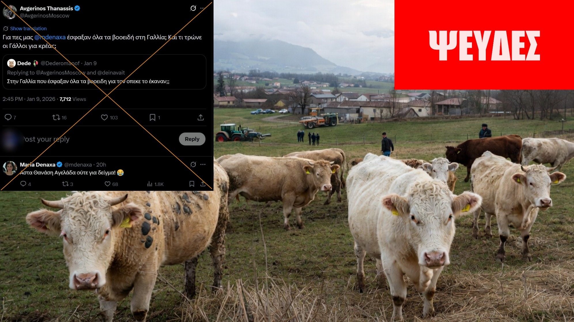 Ψευδές ότι “έσφαξαν όλα τα βοοειδή στη Γαλλία”