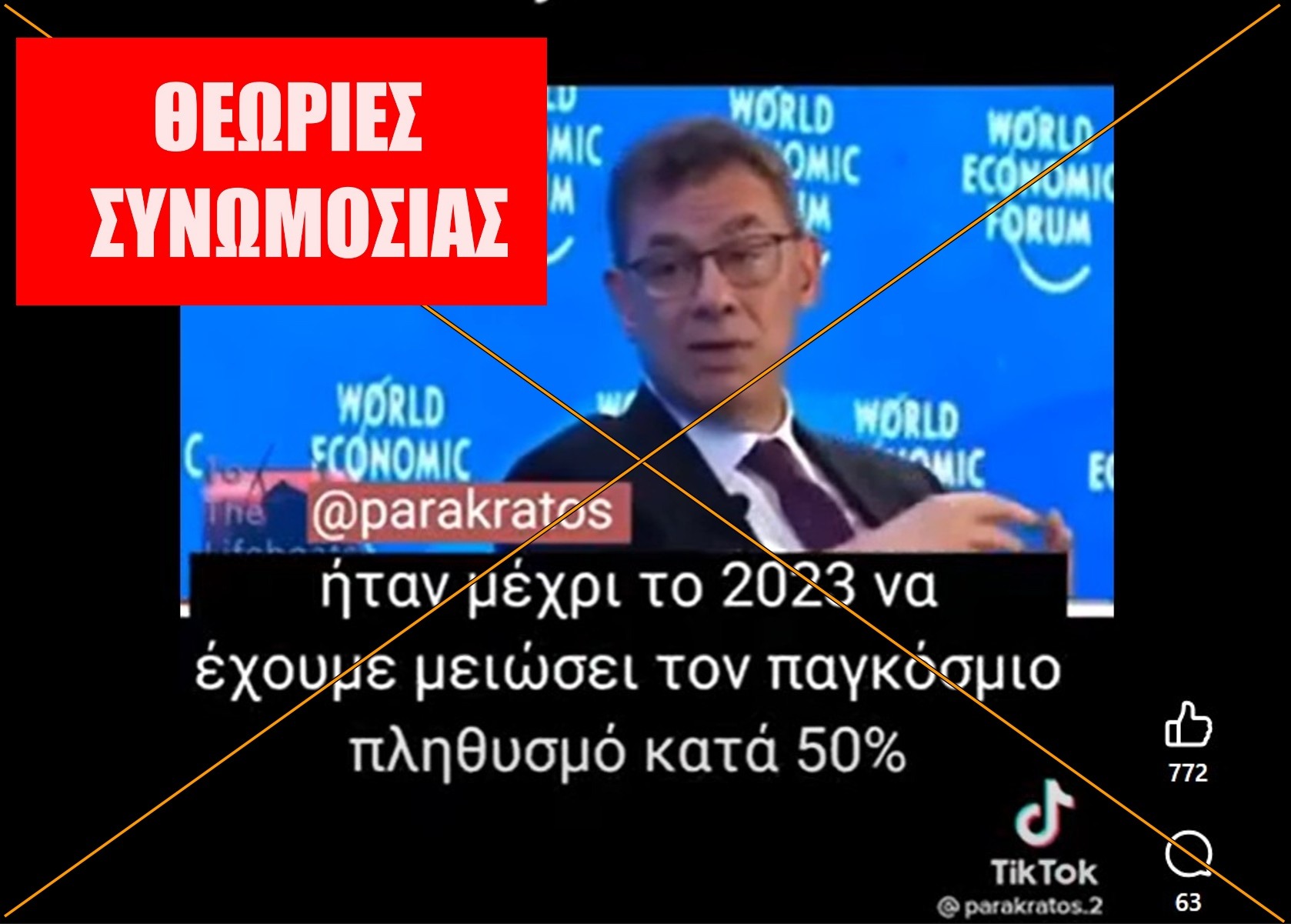 Ισχυρισμός: Ο Άλμπερτ Μπουρλά είπε στα αγγλικά στο WEF: «(…)έως το 2023 θα μειώσουμε τον αριθμό των ανθρώπων στον κόσμο κατά 50%. Νομίζω ότι σήμερα αυτό το όνειρο γίνεται πραγματικότητα».
