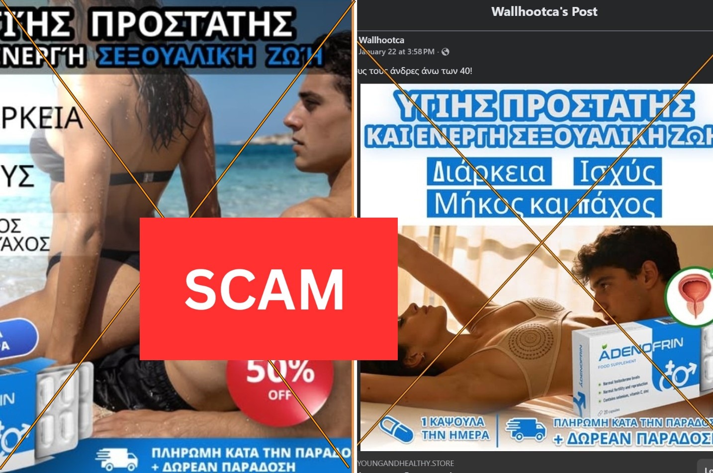 Τις τελευταίες ημέρες, διακινείται σε Ελλάδα και Κύπρο, ένα σκεύασμα με το όνομα “ADENOFRIN”, που υπόσχεται ωφέλη για τον προστάτη, αλλά και ενισχυμένες σεξουαλικές επιδόσεις. Ακολουθούν παραδείγματα: