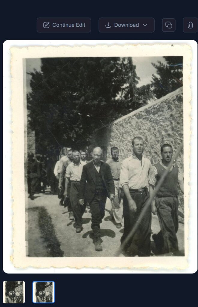 Οι αρχικές φωτογραφίες φέρουν υδατογράφημα του CRAIN’S MILITARIA, το οποίο αφαιρέθηκε με ψηφιακό εργαλείο τεχνητής νοημοσύνης, πριν κυκλοφορήσουν στην Ελλάδα. Αυτή η επεξεργασία ήταν που προκάλεσε τις παραμορφώσεις, ειδικότερα το γράμμα “C” που καλύπτει το αλλοιωμένο πρόσωπο.
