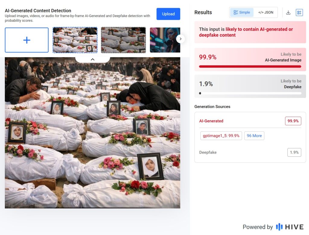 Εξετάσαμε τη φωτογραφία με το εργαλείο HIVE AI, το οποίο μας έδωσε 99,9% πιθανότητες να έχει δημιουργηθεί με τεχνητή νοημοσύνη (AI).