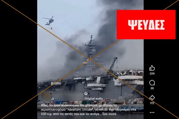 ΙΣΧΥΡΙΣΜΟΣ : Αυτό το βίντεο δείχνει το αμερικανικό αεροπλανοφόρο USS Abraham Lincoln να φλέγεται, μετά από ιρανική πυραυλική επίθεση. ΣΥΜΠΕΡΑΣΜΑ : Το βίντεο αυτό χρονολογείται από το 2020 και δείχνει την τυχαία πυρκαγιά στο αμφίβιο πλοίο USS Bonhomme Richard στο Σαν Ντιέγκο των ΗΠΑ και δεν σχετίζεται με τη σύγκρουση μεταξύ των Ηνωμένων Πολιτειών και…