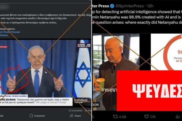 ΙΣΧΥΡΙΣΜΟΣ: Το τελευταίο βίντεο που κυκλοφόρησε η ίδια η κυβέρνηση του Ισραήλ δείχνει ότι δημιουργήθηκε από τεχνητή νοημοσύνη επειδή ο Νετανιάχου έχει 6 δάχτυλα. ΣΥΜΠΕΡΑΣΜΑ: Ο πρωθυπουργός του Ισραήλ δεν έχει σκοτωθεί από ιρανική επίθεση. Ο ισχυρισμός ότι το βίντεο του Νετανιάχου είναι προϊόν τεχνητής νοημοσύνης επειδή εμφανίζεται με “έξι δάχτυλα” είναι αβάσιμος. Το επίμαχο…