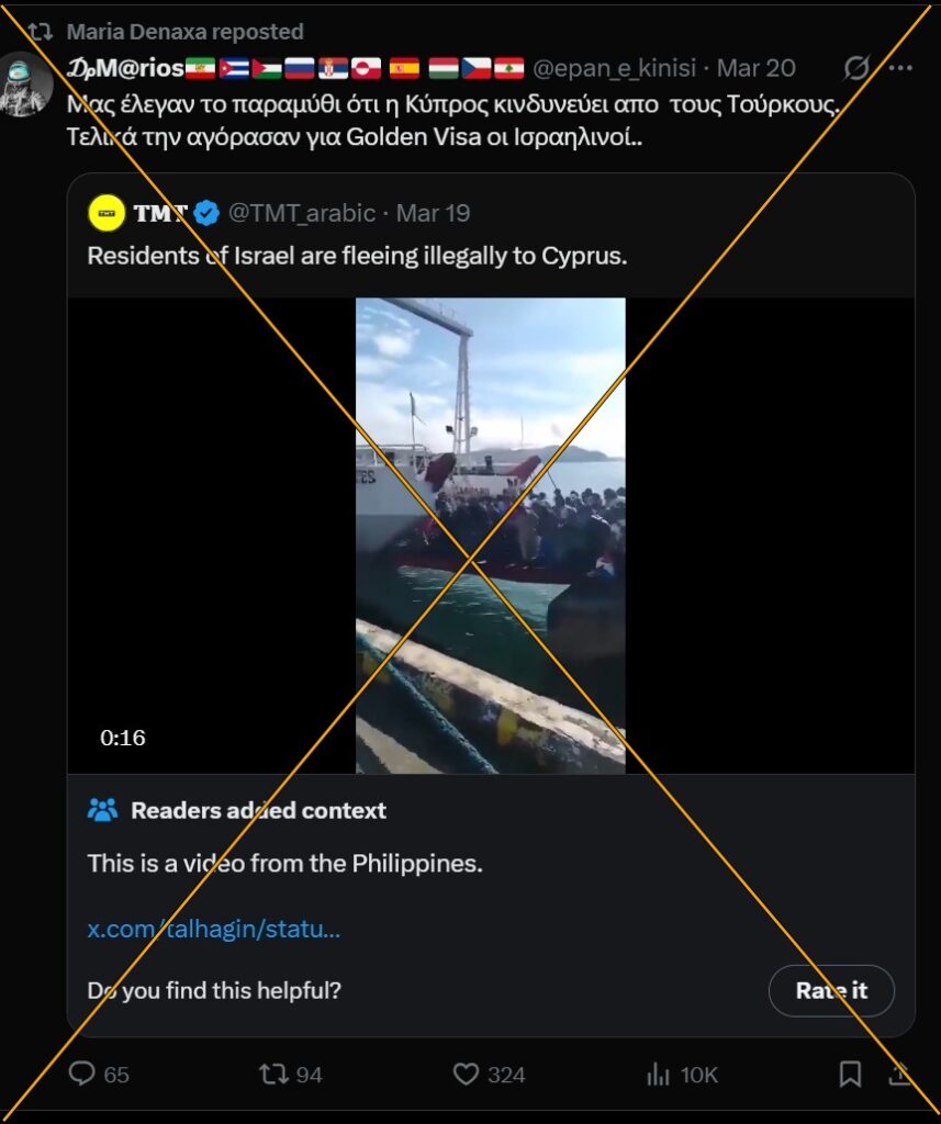 ΣΥΜΠΕΡΑΣΜΑ: Το βίντεο δεν έχει καμία σχέση με Κύπρο ή Ισραήλ. Προέρχεται από τις Φιλιππίνες και τραβήχτηκε τον Ιανουάριο του 2026.