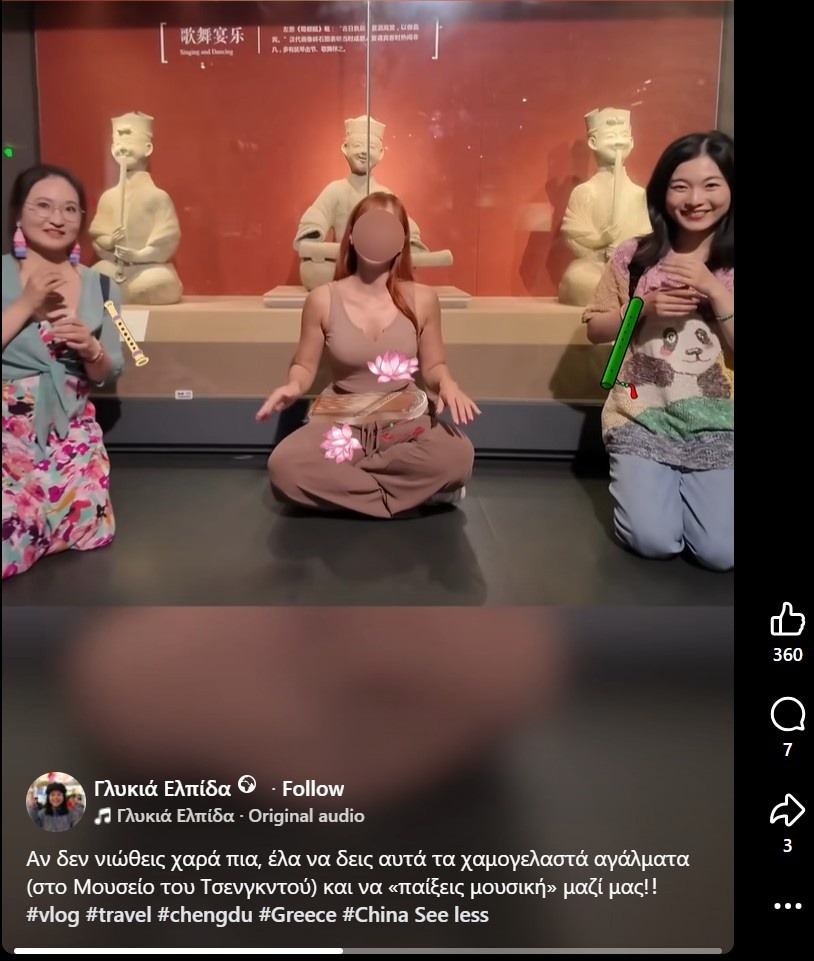 Finally, it is a documented practice that the Chinese Communist Party uses influencers to feature Western citizens (e.g. bloggers, vloggers, students, academics) visiting China, often unknowingly, to promote exclusively positive images of the country. Similarly, Greek individuals have appeared in the accounts examined here. For example, a video featuring Greek students from Aristotle University and the University of Athens reached over 3.5 million views in Greece and Cyprus via the “Sweet Hope” account, partly due to paid promotion on Facebook.