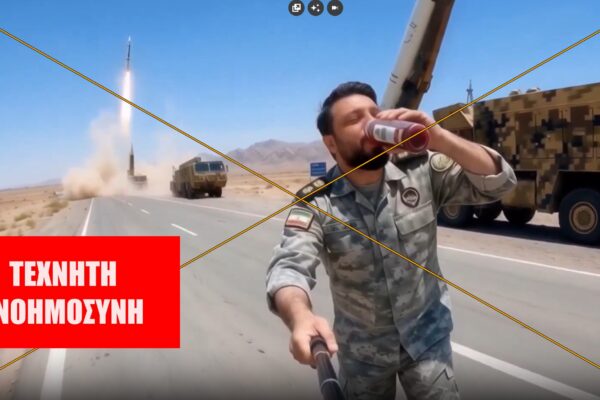 ΙΣΧΥΡΙΣΜΟΣ: Ιρανός Φρουρός καταγράφει εκτόξευση πυραύλου πίνοντας τσάι και κάνοντας… σκέιτμπορντ. ΣΥΜΠΕΡΑΣΜΑ: Σύμφωνα με ψηφιακή ανάλυση, το βίντεο έχει δημιουργηθεί με τεχνητή νοημοσύνη. Ο ισχυρισμός με το βίντεο κυκλοφόρησε σε pronews.gr, briefingnews.gr, defencenet.gr και αναρτήσεις στα κοινωνικά δίκτυα. Δεδομένου πως το τελευταίο διάστημα κυκλοφορεί πολύ υλικό σχετικά με τη σύγκρουση στη Μέση Ανατολή που έχει…
